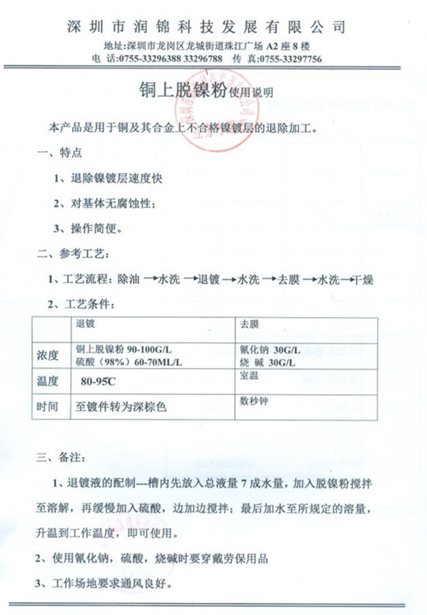 簡介:銅上脫鎳粉用于電鍍后不良品退鍍處理