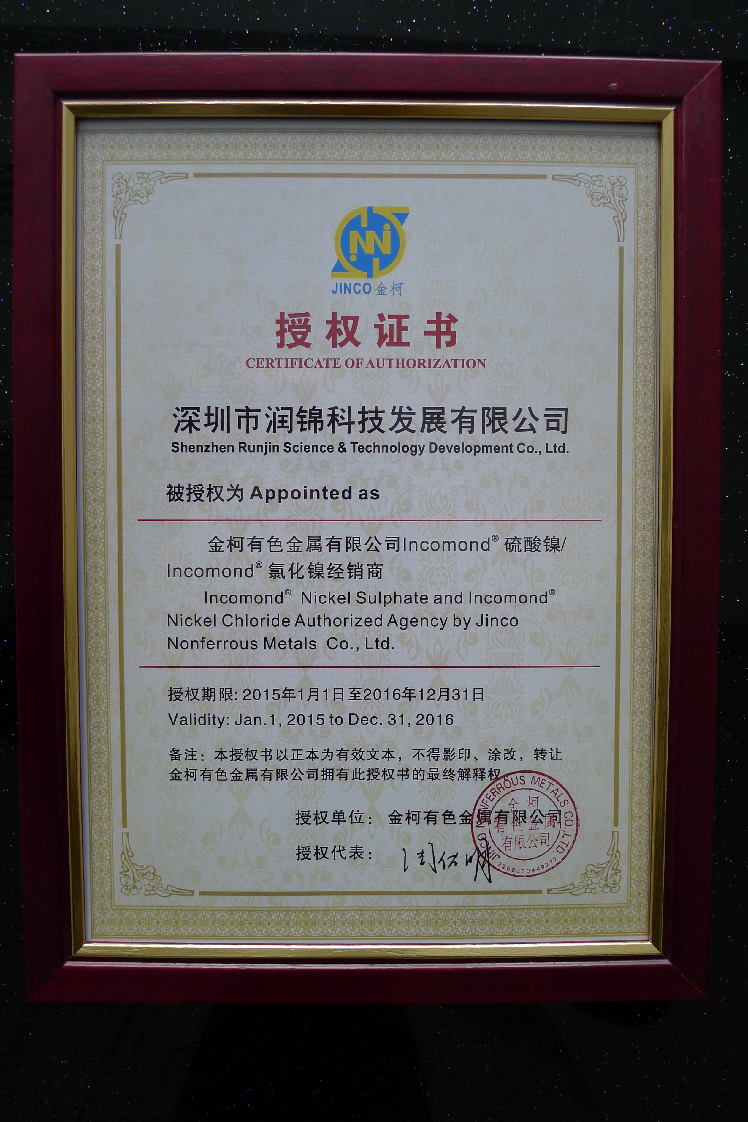 潤(rùn)錦證書